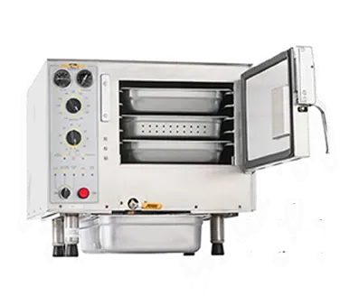 Cook with Precision and Ease with the AccuTemp S32401D060 Steamer, Convection, Boilerless, Countertop. This top-of-the-line electric steamer is designed specifically for commercial restaurant use, making it the perfect addition to any professional kitchen. With the ability to hold three 12"x 20"x 2-1/2" deep pans, this steamer offers ample space for cooking large quantities of food. The manual mechanical timer controls allow for precise cooking times, ensuring that every dish is cooked to perfection. What sets this steamer apart is its innovative vacuum cooking technology, which enhances flavor and retains nutrients. Plus, with no water or drain connections required, installation is a breeze. The AccuTemp S32401D060 is also ENERGY STAR certified, meaning it is energy-efficient and environmentally friendly. Upgrade your restaurant's cooking capabilities with this high-quality steamer.