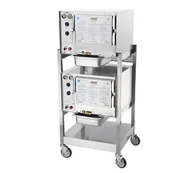 Elevate Your Culinary Mastery with the AccuTemp S32403D110 DBL Steamer. This floor model convection steamer is perfect for commercial restaurant use, offering exceptional performance and convenience. With its two SteamNHold boilerless compartments, this steamer can hold three 12" x 20" x 2-1/2" deep pans in each compartment, allowing you to cook multiple dishes simultaneously. The manual mechanical timer controls ensure precise cooking times, while the vacuum cooking feature enhances flavor and tenderness. What sets this steamer apart is its no water or drain connections requirement, making installation a breeze. The 11kw power of each compartment ensures fast and efficient cooking, while the included stand with casters provides mobility and flexibility in your kitchen. With ENERGY STAR certification, this steamer is not only reliable but also energy-efficient. Elevate your culinary creations with the AccuTemp S32403D110 DBL Steamer.