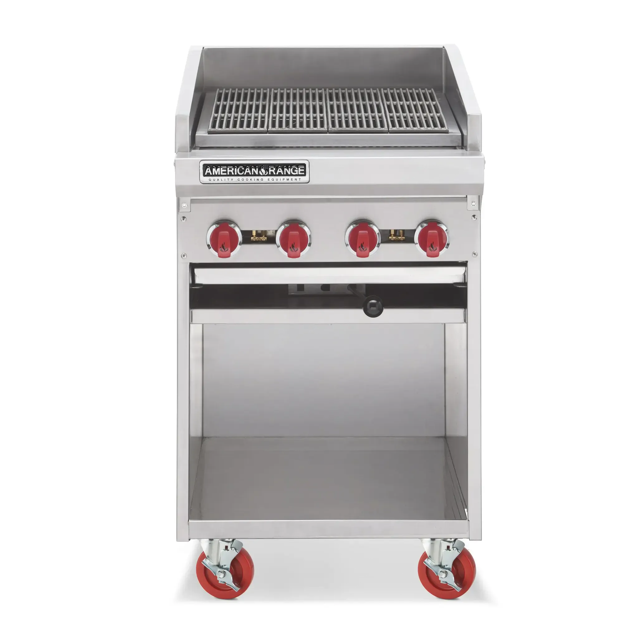 Effortless cooking, savor gourmet experiences with the American Range ADJF-24 Charbroiler. This floor model gas charbroiler is designed for commercial restaurant use, offering exceptional performance and durability. With its adjustable top and radiant type burners, you can easily achieve the perfect level of heat for grilling a variety of dishes. The 24" wide cooking surface features four burners and cast iron grates, ensuring even heat distribution and excellent sear marks. The individually controlled burners with pilots allow for precise temperature control, while the adjustable rack provides flexibility in cooking different types of food. Made in the USA with stainless steel construction, this charbroiler is built to withstand the demands of a busy kitchen. With 23.0kW of power and 80,000 BTU, it delivers outstanding cooking performance. Upgrade your restaurant's grilling capabilities with the American Range ADJF-24 Charbroiler.