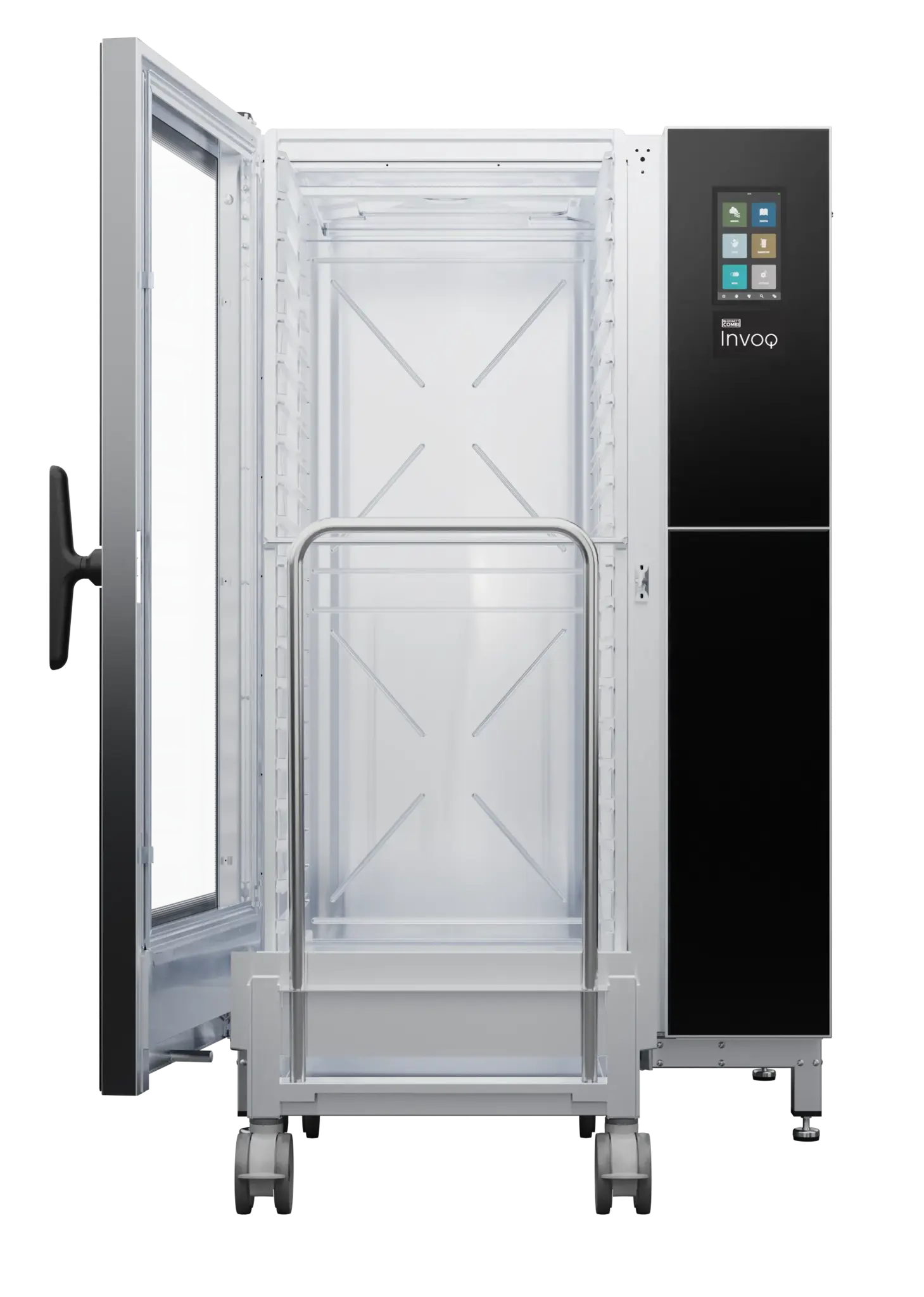 The Invoq Oven is a high-performance, energy-efficient cooking platform designed for modern professional kitchens. Combining sleek aesthetics with intelligent engineering, Invoq simplifies baking, cooking, and steaming with an intuitive interface and fast 3-second boot-up. Crafted with toughened glass, premium LED lighting, and easy-to-clean surfaces, every detail supports hygiene, functionality, and durability under pressure. Delivering 70% less energy consumption and 17% more cooking capacity, Invoq boosts sustainability without compromising performance. Its innovative steam and convection technology enhances food quality, preserving flavor, texture, and tenderness. Stackable units offer flexibility and space-saving efficiency. Cook different dishes simultaneously or power down one oven during off-peak hours to cut costs. Invoq isn’t just an oven—it’s a smarter way to cook.