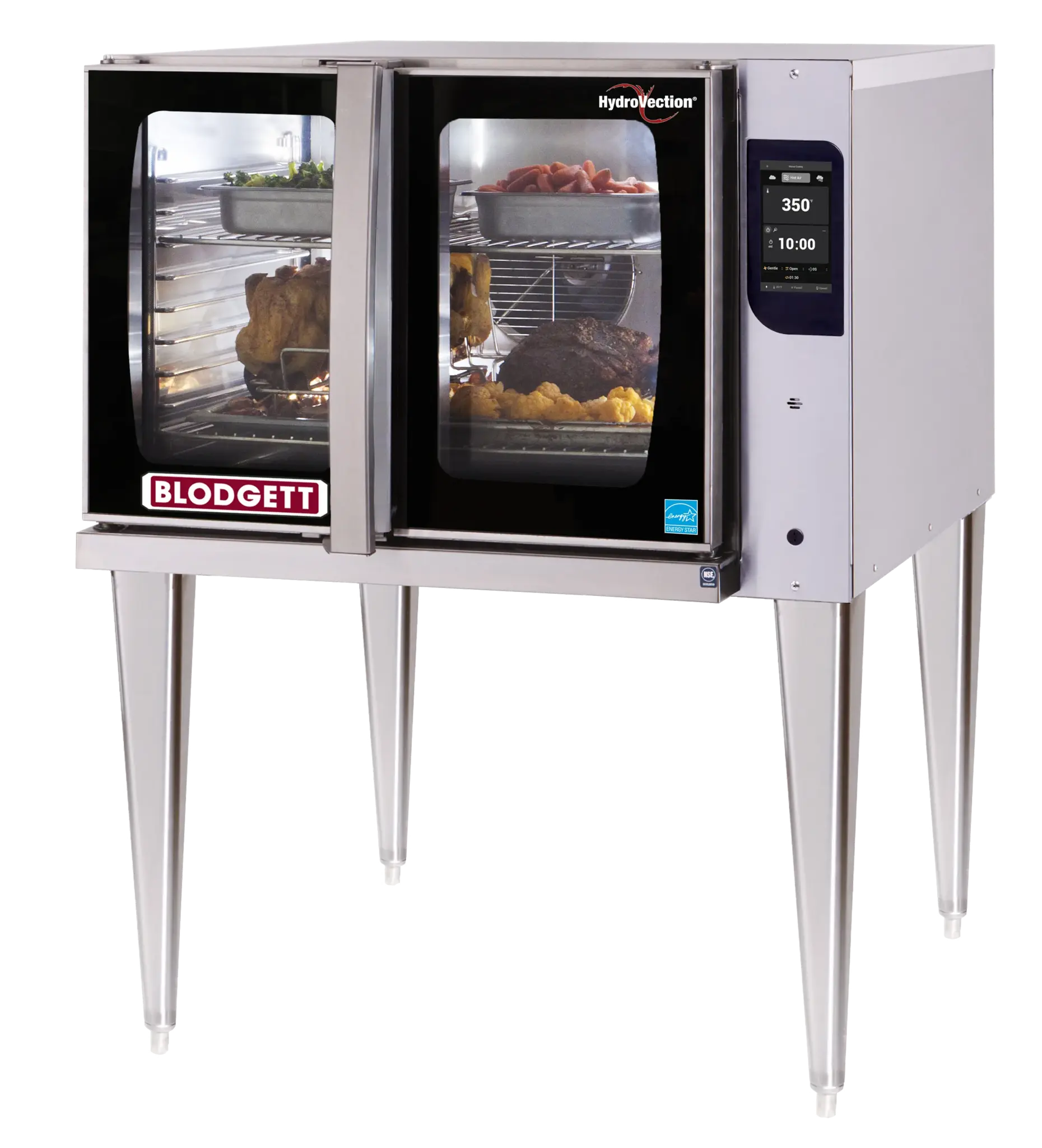 The Blodgett Hydrovection is the only split door, continuously humidified oven on the market. With its compact 38” footprint, the same as your convection oven, the Hydrovection saves space in your kitchen. The Hydrovection allows you to do more, bake, roast, gratinate, poach - in less space. Hydrovection, it’s practically a Combi at half the price! HVH Hydrovection ovens feature Blodgett’s patented Helix Technology which forces air into the oven cavity evacuating laden moisture, improving product quality while reducing cook times. Helix offers up to 30% faster cook times and 20% better yields on existing recipes. HVH-100ESGL is a single oven and includes 25” stainless steel legs