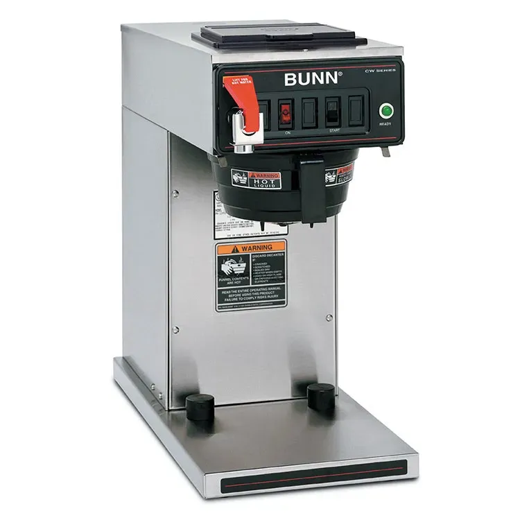 Elevate dining with innovative essentials. Introducing the Bunn, 23001.0069, Coffee Brewer for Thermal Server. Designed for commercial restaurant use, this automatic brewer delivers up to 7.5 gallons of delicious coffee per hour, ensuring your customers are always satisfied. The stainless steel construction guarantees durability, while the SplashGard funnel prevents hot liquid from splashing, ensuring safety and cleanliness. With a plumbed water access and pour-over feature, you have the flexibility to choose the most convenient water source. The hot water faucet allows for easy access to hot water for tea or other hot beverages. This brewer accepts thermal carafes up to 8-1/2" tall, providing versatility for different serving sizes. With its UL and NSF certifications, you can trust the quality and reliability of this coffee brewer. Don't settle for anything less than the best for your restaurant. Invest in the Bunn, 23001.0069, Coffee Brewer for Thermal Server and experience exceptional coffee brewing performance.
