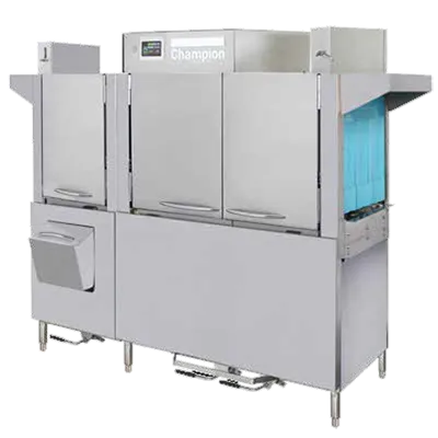 Elevate kitchen hygiene standards with the Champion 80-PRO-HD Dishwasher, rack conveyor. This top-of-the-line commercial dishwasher is designed to meet the rigorous demands of a busy restaurant kitchen. With its 44" single tank and 36" prewash, it can handle large volumes of dishes, ensuring a quick turnaround time and efficient operation. The dishwasher's rack conveyor system allows for easy loading and unloading, saving valuable time and effort. Its high-quality construction and durable materials ensure long-lasting performance, even in the most demanding environments. Whether you run a small bistro or a bustling restaurant, this dishwasher is a must-have for maintaining impeccable cleanliness and hygiene. Invest in the Champion 80-PRO-HD Dishwasher and experience the convenience and reliability it brings to your commercial kitchen.