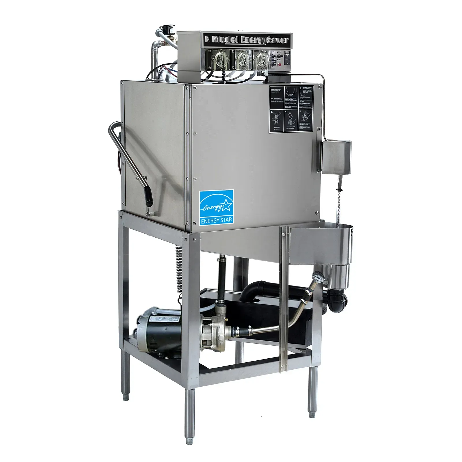 Optimize your kitchen efficiency with the CMA Dishmachines, E-AH EXT, Dishwasher, Door Type. This high-performance dishwasher is designed to meet the demands of a busy commercial restaurant. With its low temperature chemical sanitizing feature and top-mounted controls, it ensures thorough cleaning and sanitization of your dishes. The straight-thru design and external sump make it easy to load and unload dishes, saving you time and effort. The Poly Pro scrap accumulator helps to prevent clogs and maintain the dishwasher's performance. The auto start/stop function further enhances efficiency by automatically starting and stopping the dishwasher as needed. Made with stainless steel construction, this dishwasher is durable and built to withstand the rigors of a commercial kitchen. With a 1 HP wash pump and ENERGY STAR certification, it not only delivers powerful performance but also helps to reduce energy consumption. Trust CMA Dishmachines to provide you with a reliable and efficient dishwasher for your restaurant.