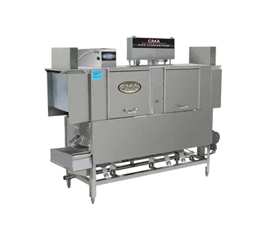 Enhance your commercial kitchen with the CMA Dishmachines, EST-66, Dishwasher, Conveyor Type. This energy-efficient dishwasher is designed to meet the demands of a busy restaurant environment. With its dual tank design and four-stage wash process, it can handle up to 249 racks per hour, ensuring that your dishes are cleaned quickly and efficiently. The low temperature chemical sanitizing or high temperature sanitizing options give you flexibility in choosing the best method for your establishment. The automatic start/stop and fill features make operation a breeze, while the automatic water control system ensures consistent water usage. The stainless steel construction and chemical resistant industrial heaters ensure durability and longevity. Additionally, this dishwasher is ENERGY STAR certified, making it an environmentally friendly choice. Upgrade your kitchen with the CMA Dishmachines, EST-66, Dishwasher, Conveyor Type and experience the convenience and efficiency it brings to your restaurant.
