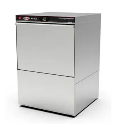 Serve with pride with the CMA Dishmachines, H-1X, Undercounter Dishwasher. This high-performance dishwasher is designed to meet the demands of a busy commercial restaurant, ensuring efficient and effective cleaning of your dishes and glasses. With a capacity of 24 racks or 96 covers per hour, this dishwasher can handle high-volume operations with ease. The unique Dump & Fill cycle drains the wash water every cycle and refills it with high-temperature water for a sanitizing rinse, guaranteeing optimal cleanliness. The pumped wash and rinse system ensures precise water pressure for excellent results every time. The Safe T Temp feature ensures a high-temperature final rinse, meeting sanitation standards. The top-mounted LCD display keeps you informed of the machine's status, while the easy-to-understand controls make operation a breeze. The all-stainless steel construction ensures durability and years of trouble-free operation. The large door opening accommodates larger dishes and glasses, and the removable spray arm system makes cleaning a breeze. With built-in chemical pumps and a pumped drain, this dishwasher offers flexibility and convenience. Serve with pride and efficiency with the CMA Dishmachines, H-1X, Undercounter Dishwasher.