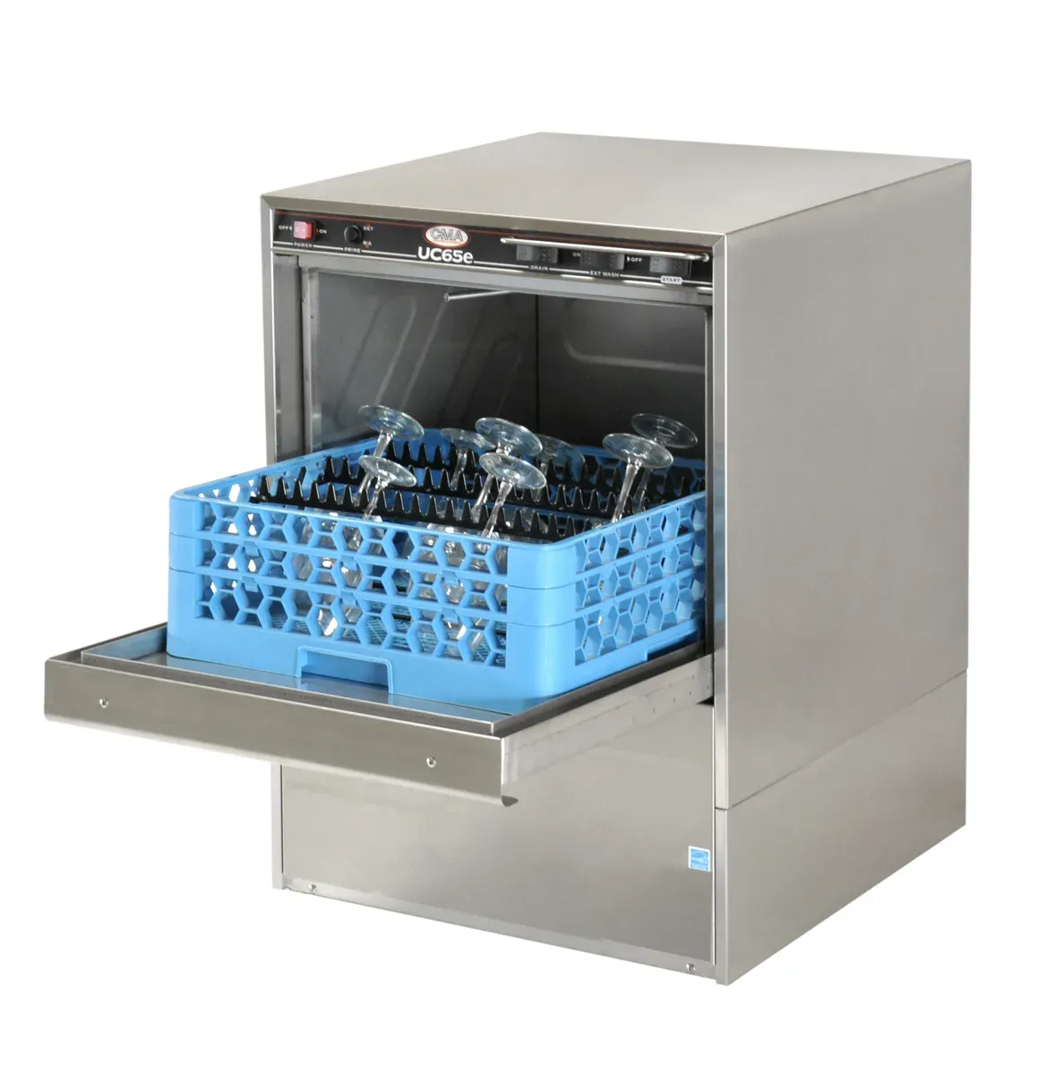 Cook with confidence and flair with the CMA Dishmachines UC 65E Undercounter Dishwasher. This high-performance dishwasher is designed specifically for commercial restaurant use, ensuring that your dishes are thoroughly cleaned and sanitized with ease. With a built-in 4.0 kW booster heater and a 2.0 kW tank heater, this dishwasher delivers high-temperature sanitizing for optimal cleanliness. It has a generous 30 racks per hour capacity, allowing you to efficiently clean a large volume of dishes. The upper and lower stainless steel rotating wash and rinse arms ensure thorough coverage, while the triple filtering protection system keeps your water clean and free from debris. Made with durable stainless steel construction, this dishwasher is built to withstand the demands of a busy restaurant kitchen. It also includes a peg rack and an open rack for added convenience. NSF, cETLus, and ENERGY STAR certified, the CMA Dishmachines UC 65E Undercounter Dishwasher is a reliable and efficient choice for any commercial restaurant.