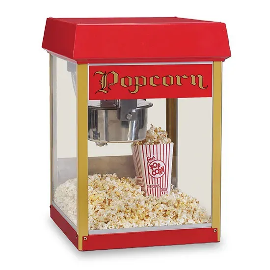 The Concessions Crew line of popcorn poppers is absolutely second to none. They feature stainless-steel kettles, with integrated heating elements, for better cooking and easier cleaning, the most powerful drive motors in the industry, and clean-air discharge technology that means only popcorn-selling aroma enters the room—no smoke, steam or oil vapors that turn customers away. Every Global Solutions popcorn popper is available with an accessory vintage-style cart that catches the eye and adds a higher-end merchandising character that increases sales.