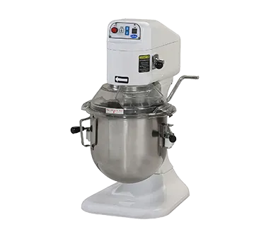 Master your restaurant's kitchen with the Globe SP08 Planetary Mixer. This countertop model is designed to meet the demands of a busy commercial restaurant. With its 8 qt. capacity and gear-driven transmission, this mixer can handle a variety of mixing tasks with ease. The 3-speed settings allow for precise control, while the front-mounted touchpad controls with a 15-minute digital timer ensure accurate timing for your recipes. Safety is a top priority with the SP08, as it features a safety interlocked bowl lift and thermal overload protection. The mixer comes complete with a polycarbonate bowl guard with a chute, a stainless steel bowl and whip, and an aluminum beater and spiral dough hook. The cast aluminum body is durable and built to last. Powered by a 1/4 HP motor, this mixer operates at 115v/60/1-ph and is NSF and cETLus certified. Upgrade your kitchen with the Globe SP08 Planetary Mixer and experience the efficiency and reliability it brings to your restaurant.