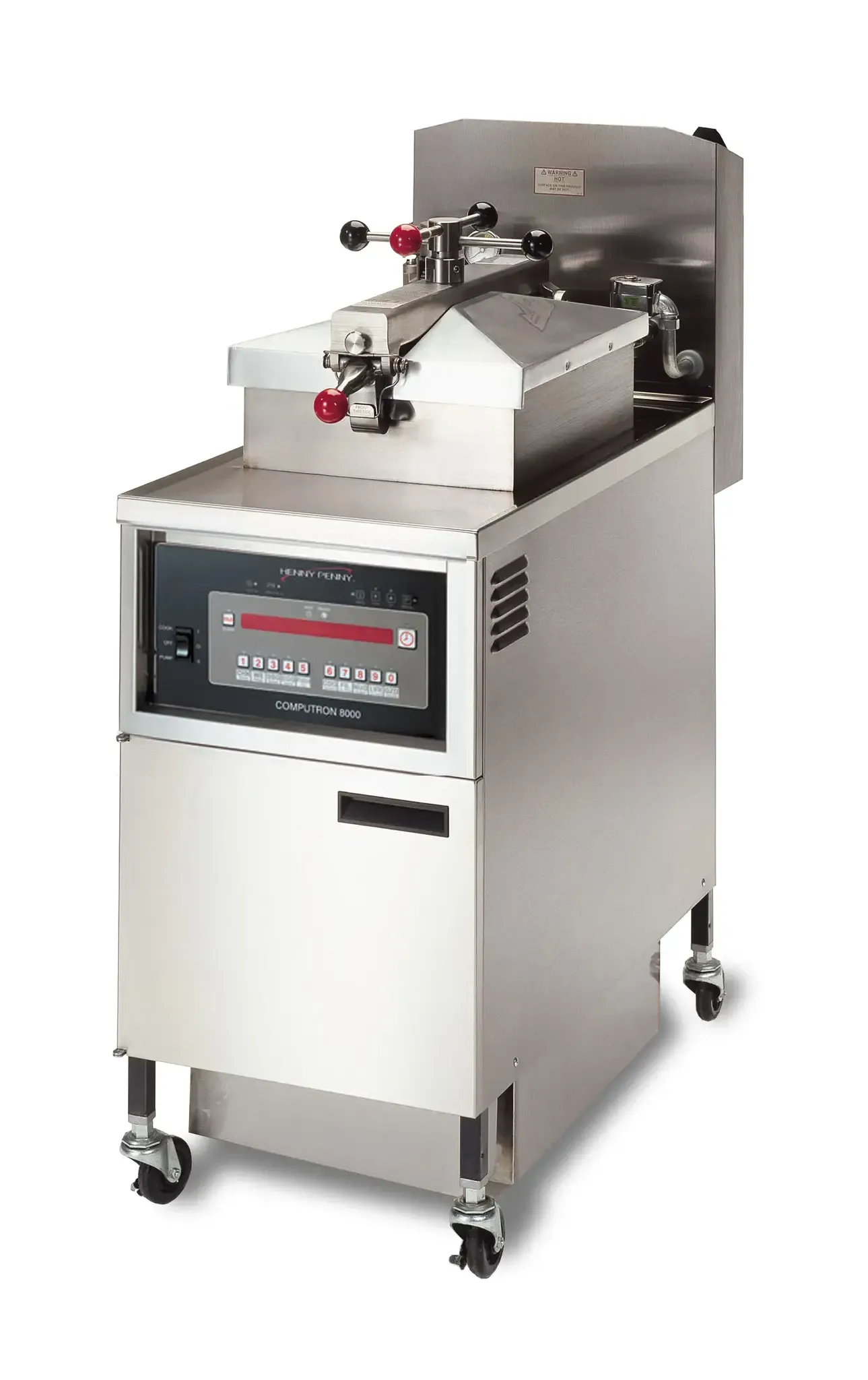 Frying under pressure enables lower cooking temperatures for longer oil life, and faster cooking times to meet peak demand. The PFG 600 gas pressure fryer's fast recovery translates into higher throughput, lower energy costs and longer frying oil life. Henny Penny pressure fryers have a patented lid lock and color-keyed spindle that make it easy to create a perfect pressure seal every time. A built-in filtration system filters and returns hot frying oil in minutes. No separate pumps and pans, no handling hot oil. The Computron™ 1000 control offers programmability in a simple, easy to use digital control panel with LED display.