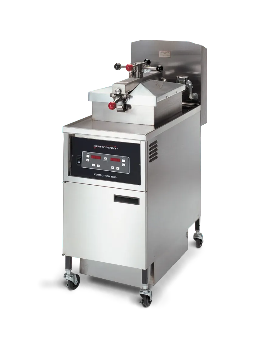 Frying under pressure enables lower cooking temperatures for longer oil life, and faster cooking times to meet peak demand. The PFG 600 gas pressure fryer's fast recovery translates into higher throughput, lower energy costs and longer frying oil life. Henny Penny pressure fryers have a patented lid lock and color-keyed spindle that make it easy to create a perfect pressure seal every time. A built-in filtration system filters and returns hot frying oil in minutes. No separate pumps and pans, no handling hot oil. The Computron™ 1000 control offers programmability in a simple, easy to use digital control panel with LED display.