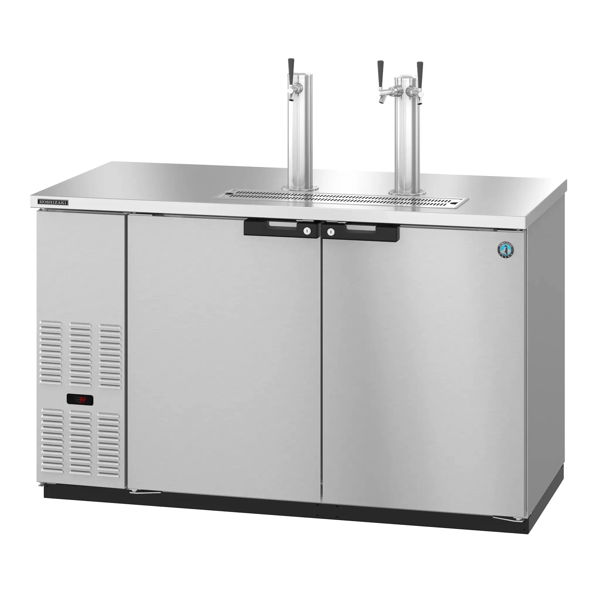 The durable stainless steel interior with led lights and thick stainless steel threshold protects door frame when loading and unloading cabinet. While the stainless steel exterior front, sides and rear, plus a 18 gauge stainless steel top will endure many busy years! The DD59-S fits: (3) 1/2 barrels (keg), and (2) polished stainless steel insulated towers with (3) plated brass faucets, it also features electronic controller with led display (°f or °c). Made to Order. Cabinet fits: (2) 1/2 barrels and (1) 1/4 barrel, or (6) slim 1/4 barrels, or (8) 1/6 barrels, or (1) 1/2 barrel and (1) slim 1/4 barrel and (3) 1/6 barrels. The unit is ETL Safety (US & C) Listed, ETL Sanitation and includes a five years compressor warranty / three years parts and labor warranty.
