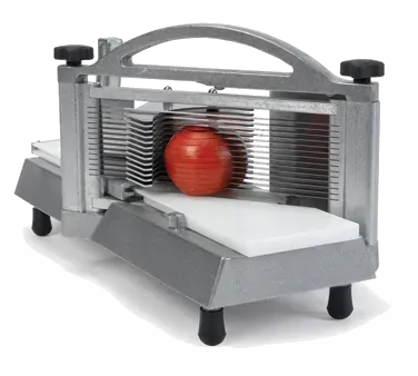 Introducing the Nemco 56600-3 Tomato Slicer, the essential tool for modern restaurant excellence. Designed with commercial restaurant use in mind, this slicer is a game-changer for any kitchen. With its razor-sharp blades and pretensioned cartridge blade assembly, it effortlessly slices tomatoes into perfect 3/8" compact slices. Specially placed guards ensure safety while the polyethylene slide board and ergonomic handle make operation a breeze. The self-lubrication track and rubber feet provide smooth and stable slicing, while the table stop keeps the slicer securely in place. NSF certified, this slicer meets the highest standards of hygiene and durability. Whether you're running a pizzeria, sandwich shop, or salad bar, the Nemco 56600-3 Tomato Slicer is a must-have for efficient food preparation. Elevate your restaurant's productivity and precision with this top-of-the-line slicer from Nemco.
