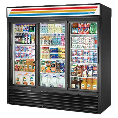 Cook with confidence with the True Manufacturing GDM-69-HC-LD Refrigerator Merchandiser. This three-section refrigerated merchandiser is perfect for commercial restaurant use. With 12 shelves and three low-E thermal glass sliding doors, you can easily display and access your products. The LED interior lights provide excellent visibility, while the powder-coated steel exterior ensures durability. The white interior with a stainless steel floor not only looks sleek but also makes cleaning a breeze. The leg levelers allow for easy installation and stability. This merchandiser uses R290 Hydrocarbon refrigerant, which is environmentally friendly. With a 1/2 HP compressor and 115v/60/1-ph power supply, this unit is powerful and efficient. It is cULus and UL EPH Classified, guaranteeing its quality and safety. Made in the USA by True Manufacturing, this refrigerator merchandiser is a reliable and authentic choice for your commercial restaurant needs.