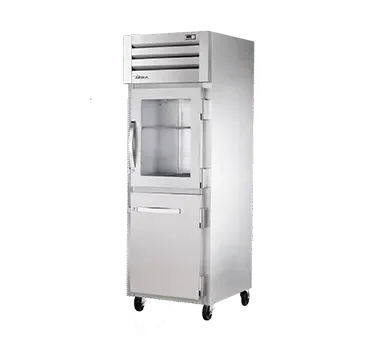 Streamline your restaurant cooking operations with the True Manufacturing STR1R-1HG/1HS-HC Refrigerator, Reach-In. This top-of-the-line refrigerator is designed to meet the demands of a busy commercial kitchen. With its sleek stainless steel front and sides, it not only looks professional but is also built to withstand the rigors of a bustling restaurant environment. The glass and stainless steel half doors come with locks and cam-lift hinges, ensuring the safety and security of your ingredients. The digital temperature control allows for precise temperature management, while the LED interior lights provide excellent visibility. The refrigerator also features a 1/4 HP compressor and uses R290 Hydrocarbon refrigerant, making it energy-efficient and environmentally friendly. With its spacious interior and convenient 5" castors, this True Manufacturing refrigerator is a must-have for any restaurant looking to optimize their storage space and streamline their operations. Trust in the quality and reliability of True Manufacturing, a trusted name in the industry.
