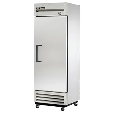 Transform your food service with the True Manufacturing T-19-HC Refrigerator, Reach-In. This top-of-the-line refrigerator is designed to meet the demands of a commercial restaurant setting. With its one-section design and three adjustable PVC coated shelves, you can easily organize and store your ingredients and prepared dishes. The interior lighting ensures visibility, making it easy to locate items quickly. The stainless steel door and front, along with the aluminum sides and interior with a stainless steel floor, provide durability and easy cleaning. The 2-1/2" castors allow for easy mobility, making it convenient to move the refrigerator when needed. The T-19-HC uses R290 Hydrocarbon refrigerant, which is not only environmentally friendly but also ensures efficient cooling. With a 1/10 HP motor and 1.5 amps, this refrigerator is energy-efficient and cost-effective. Trust True Manufacturing, a reputable vendor known for their high-quality products made in the USA. Upgrade your restaurant's refrigeration system with the True Manufacturing T-19-HC Refrigerator, Reach-In.