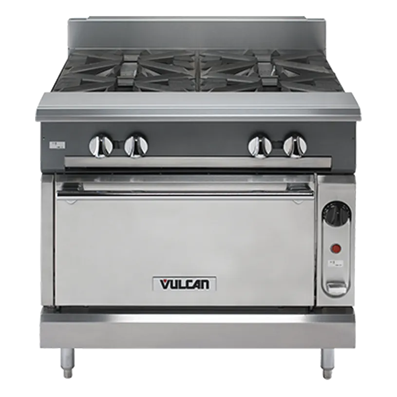Streamline your restaurant cooking operations with the Vulcan V6B36S Range. This heavy-duty gas range is designed to meet the demands of a commercial kitchen, making it the perfect addition to any restaurant. With six 35,000 BTU open burners, you'll have plenty of cooking power to handle even the busiest of shifts. The cast iron grates provide durability and even heat distribution, ensuring that your dishes are cooked to perfection every time. The standard oven is perfect for baking, roasting, and more, while the stainless steel construction makes it easy to clean and maintain. The V6B36S also features a stainless steel front, front top ledge, sides, base, burner box, and stub back, giving it a sleek and professional appearance. With 260,000 BTU of total power, this range is CSA and NSF certified, guaranteeing its quality and safety. Upgrade your kitchen with the Vulcan V6B36S Range and experience the efficiency and reliability that Vulcan is known for.
